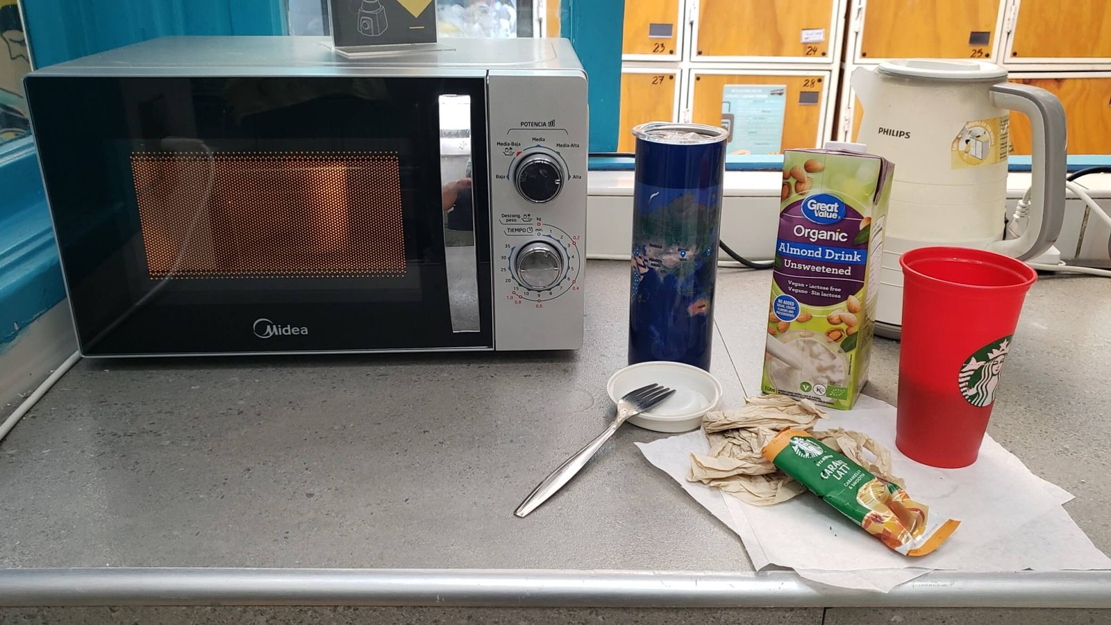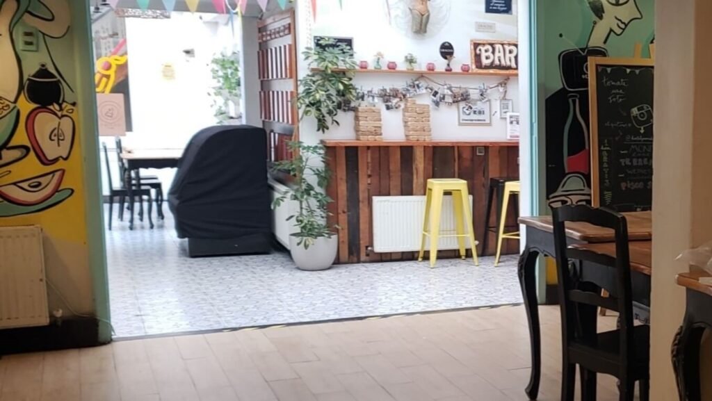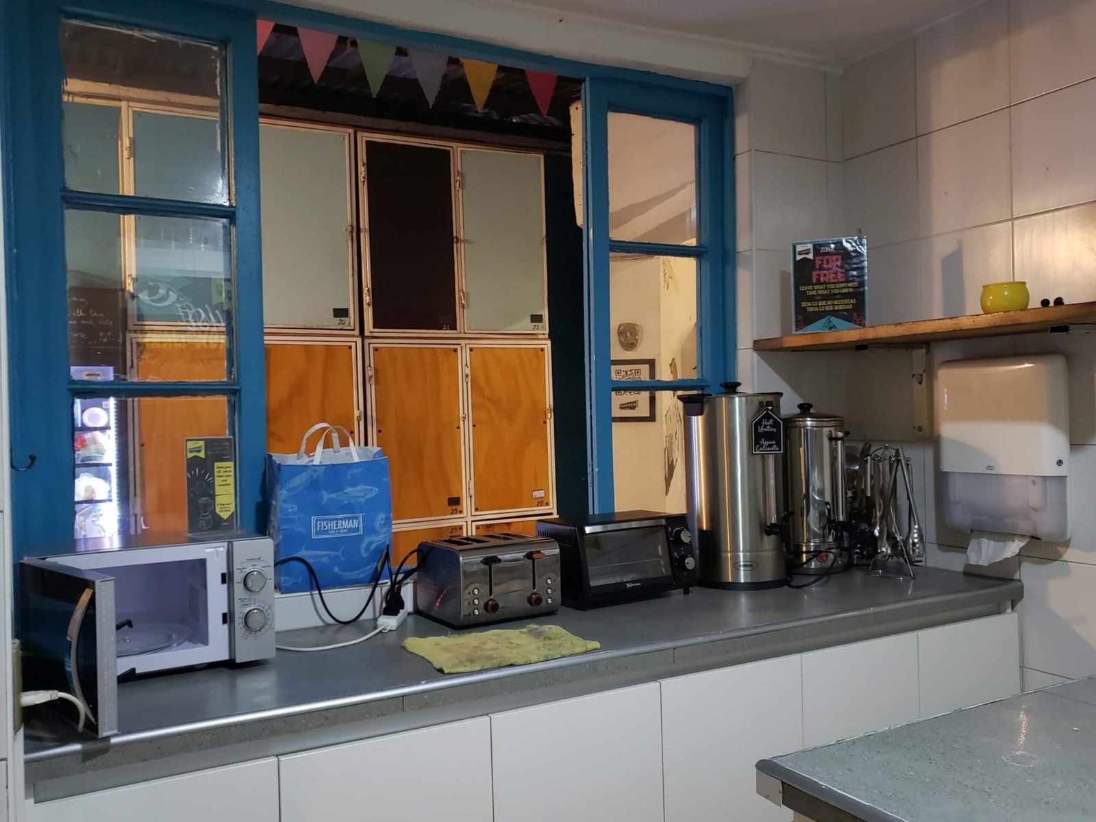 It has a shared kitchen (as most hostels do) which doubles as a bar in the evening.