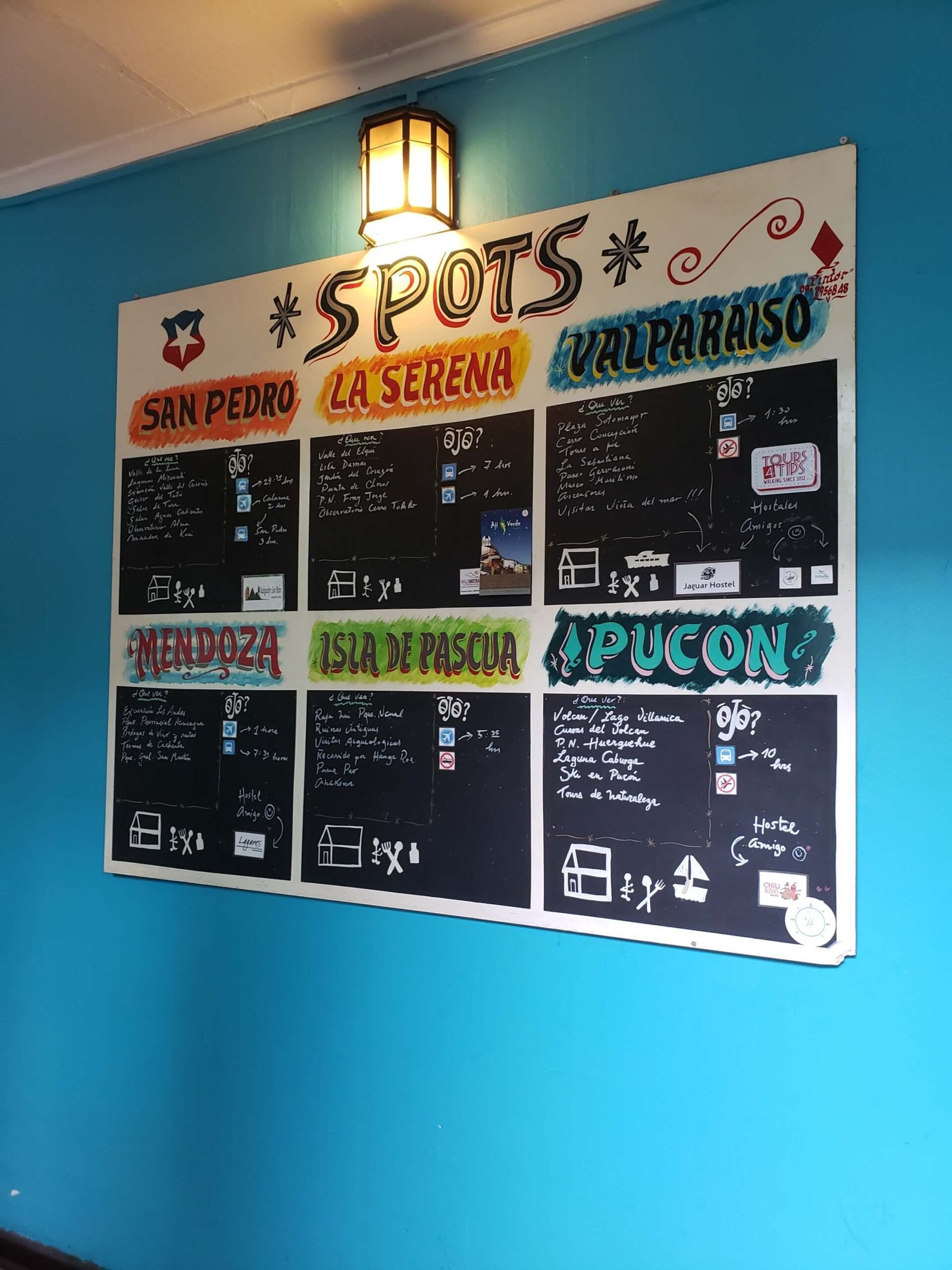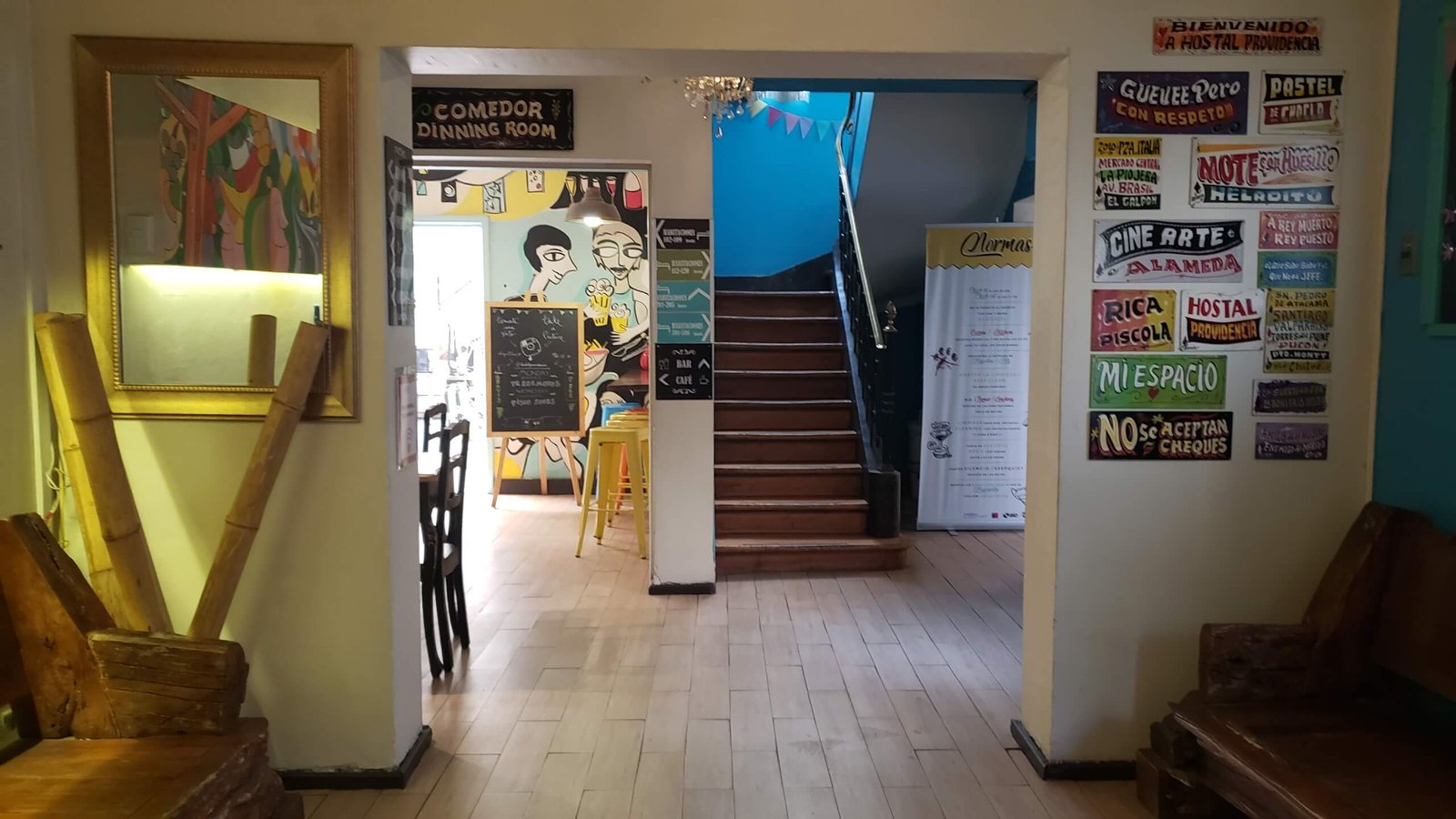 Sharing pics from Hostal Providencia, my home in Santiago for the last few weeks. As hostels go, they are generally the best choice for me for long term stays — unique and cozy with friendly people. When you first see this hostel from the outside you can’t tell how big or how colorful it is inside. The entrance is tucked away in a dead-end / cul-de-sac street. It takes a while to realize how big it is. The nice thing about this place is being around like-minded travelers. I was told this hostel is the largest hostel in Chile.
